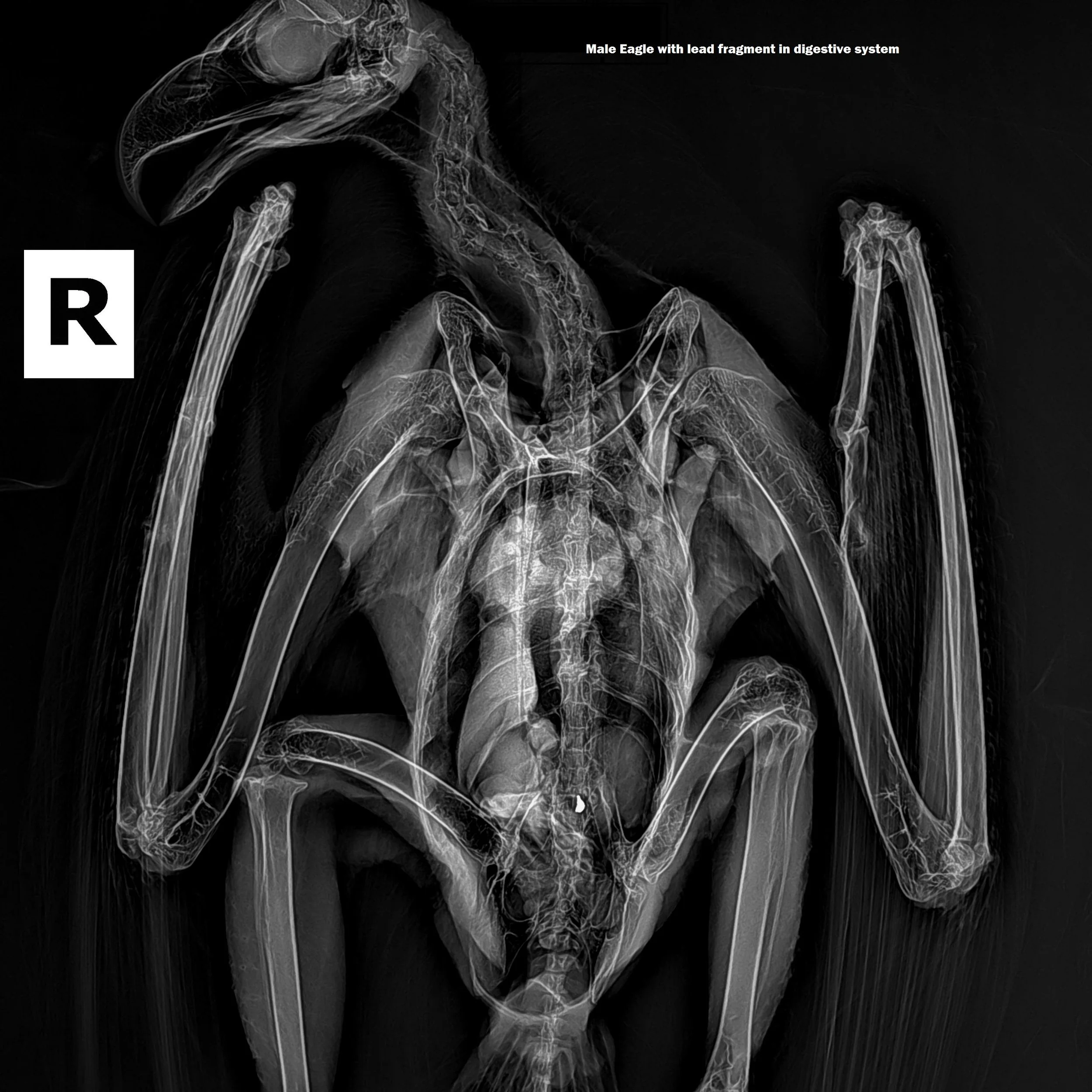 X-rays of bald eagles show lead fragments present in their stomachs — ingested from feeding on contaminated gut piles and carcasses containing the remains from lead ammunition.